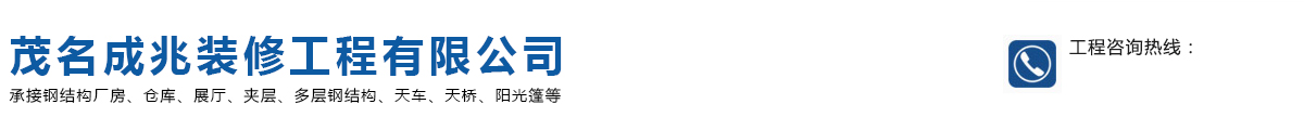 茂名成兆裝修工程有限公司具有鋼結構制造和鋼結構安裝的專業公司。從事鋼結構工程的設計、制造、安裝施 工及鋼結構材料的銷售。主要承接鋼結構廠房、倉庫、展廳、夾層、多層鋼結構、天車、天橋、陽光篷等鋼結 構工程;配套土建、水電安裝、廠房改造、維修等工程項目。